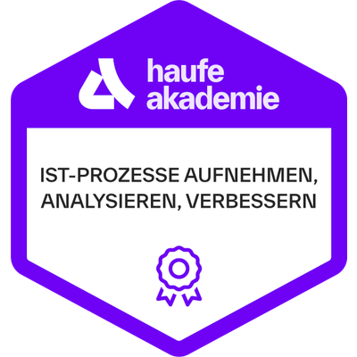 Empfänger:innen dieses Badges haben an einer betrieblichen Weiterbildung der Haufe Akademie teilgenommen. Die betriebliche Weiterbildung vermittelte profundes Wissen und Kompetenzen mit höchsten Anforderungen an Aktualität, Qualität und Praxisrelevanz. Ausgewählte Top-Referent:innen, State-of-the-Art Inhalte und erprobte Lerntransfertools befähigen die Empfänger:innen dieses Badges dazu, das vermittelte Know-how wirksam in die Praxis umzusetzen.