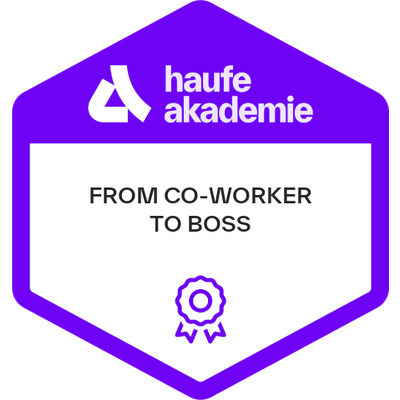 The recipient of this badge has undergone training at the Haufe Akademie and has thus successfully expanded his qualifications in the field of "Führung und Leadership". The training provided him with profound knowledge and skills with the highest demands on topicality, quality and practical relevance. State-of-the-art content, tried and tested learning transfer tools and selected top speakers enable the recipient of this badge to effectively put the know-how into practice.