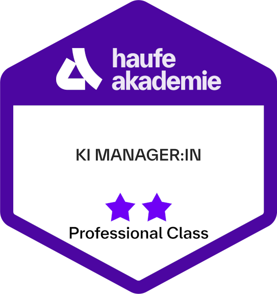 Empfänger:innen dieses Badges haben an einer betrieblichen Weiterbildung der Haufe Akademie teilgenommen. Die betriebliche Weiterbildung vermittelte profundes Wissen und Kompetenzen mit höchsten Anforderungen an Aktualität, Qualität und Praxisrelevanz. Ausgewählte Top-Referent:innen, State-of-the-Art Inhalte und erprobte Lerntransfertools befähigen die Empfänger:innen dieses Badges dazu, das vermittelte Know-how wirksam in die Praxis umzusetzen.
