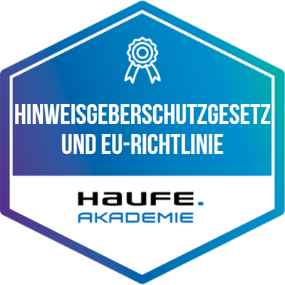 Empfänger:innen dieses Badges haben an einer betrieblichen Weiterbildung der Haufe Akademie teilgenommen. Die betriebliche Weiterbildung vermittelte profundes Wissen und Kompetenzen mit höchsten Anforderungen an Aktualität, Qualität und Praxisrelevanz. Ausgewählte Top-Referent:innen, State-of-the-Art Inhalte und erprobte Lerntransfertools befähigen die Empfänger:innen dieses Badges dazu, das vermittelte Know-how wirksam in die Praxis umzusetzen.