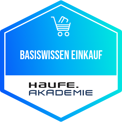 Der Empfänger dieses Badges hat ein Training der Haufe Akademie durchlaufen und hierdurch mit Erfolg seine Qualifikation im Bereich "Einkauf" ausgebaut. Das Training vermittelte ihm profundes Wissen und Kompetenzen mit höchsten Anforderungen an Aktualität, Qualität und Praxisrelevanz. State-of-the-Art Inhalte, erprobte Lerntransfertools und ausgewählte Top-Referenten befähigen den Empfänger dieses Badges dazu, dass vermittelte Know-how wirksam in die Praxis umzusetzen.