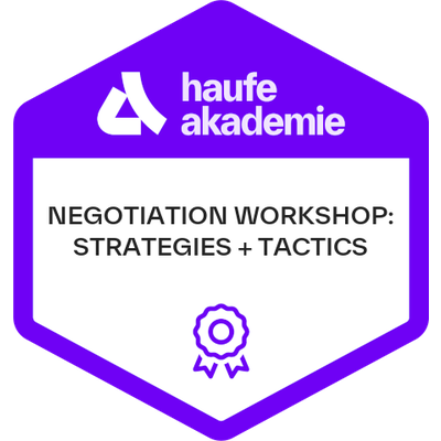 Empfänger:innen dieses Badges haben an einer betrieblichen Weiterbildung der Haufe Akademie teilgenommen. Die betriebliche Weiterbildung vermittelte profundes Wissen und Kompetenzen mit höchsten Anforderungen an Aktualität, Qualität und Praxisrelevanz. Ausgewählte Top-Referent:innen, State-of-the-Art Inhalte und erprobte Lerntransfertools befähigen die Empfänger:innen dieses Badges dazu, das vermittelte Know-how wirksam in die Praxis umzusetzen.