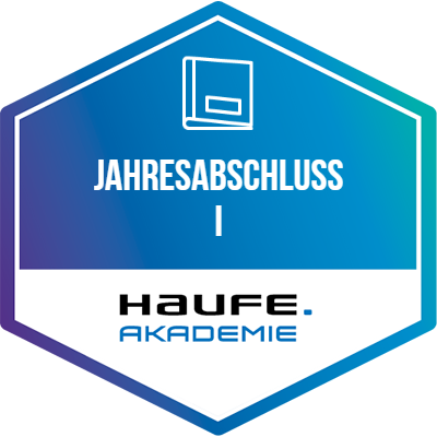 Empfänger:innen dieses Badges haben an einer betrieblichen Weiterbildung der Haufe Akademie teilgenommen. Die betriebliche Weiterbildung vermittelte profundes Wissen und Kompetenzen mit höchsten Anforderungen an Aktualität, Qualität und Praxisrelevanz. Ausgewählte Top-Referent:innen, State-of-the-Art Inhalte und erprobte Lerntransfertools befähigen die Empfänger:innen dieses Badges dazu, das vermittelte Know-how wirksam in die Praxis umzusetzen.