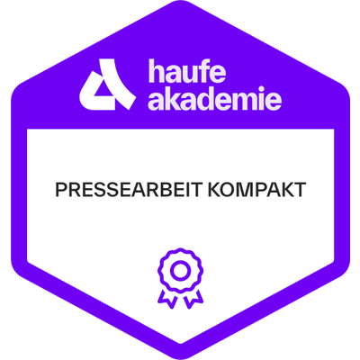 Empfänger:innen dieses Badges haben an einer betrieblichen Weiterbildung der Haufe Akademie teilgenommen. Die betriebliche Weiterbildung vermittelte profundes Wissen und Kompetenzen mit höchsten Anforderungen an Aktualität, Qualität und Praxisrelevanz. Ausgewählte Top-Referent:innen, State-of-the-Art Inhalte und erprobte Lerntransfertools befähigen die Empfänger:innen dieses Badges dazu, das vermittelte Know-how wirksam in die Praxis umzusetzen.