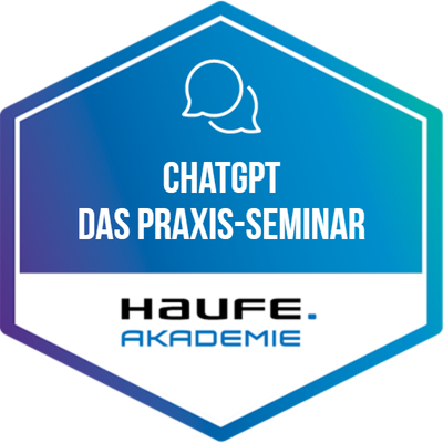 Empfänger:innen dieses Badges haben an einem Praxis-Seminar der Haufe Akademie teilgenommen. Das Seminar vermittelte mit einer Kombination aus praktischen Aufgaben, inspirierenden Szenarien und konkreten Business Cases eine solide Grundlage, um ChatGPT selbst einzusetzen und diese im eigenen Business-Kontext einordnen zu können. In diesem Seminar lernten die Empfänger:innen dieses Badges, wie das Potenzial der KI für Unternehmen ausgeschöpft werden kann.