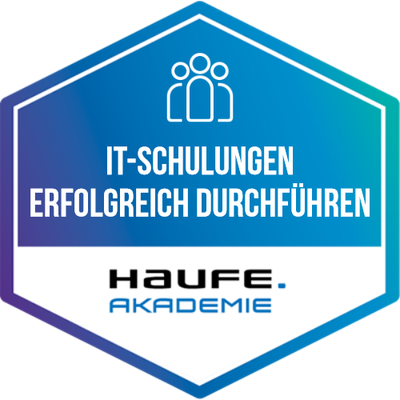 Empfänger:innen dieses Badges haben an einer betrieblichen Weiterbildung der Haufe Akademie teilgenommen. Die betriebliche Weiterbildung vermittelte profundes Wissen und Kompetenzen mit höchsten Anforderungen an Aktualität, Qualität und Praxisrelevanz. Ausgewählte Top-Referent:innen, State-of-the-Art Inhalte und erprobte Lerntransfertools befähigen die Empfänger:innen dieses Badges dazu, das vermittelte Know-how wirksam in die Praxis umzusetzen.