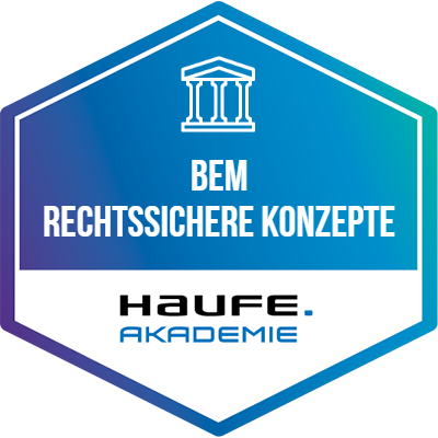Empfänger:innen dieses Badges haben an einer betrieblichen Weiterbildung der Haufe Akademie teilgenommen. Die betriebliche Weiterbildung vermittelte profundes Wissen und Kompetenzen mit höchsten Anforderungen an Aktualität, Qualität und Praxisrelevanz. Ausgewählte Top-Referent:innen, State-of-the-Art Inhalte und erprobte Lerntransfertools befähigen die Empfänger:innen dieses Badges dazu, das vermittelte Know-how wirksam in die Praxis umzusetzen.