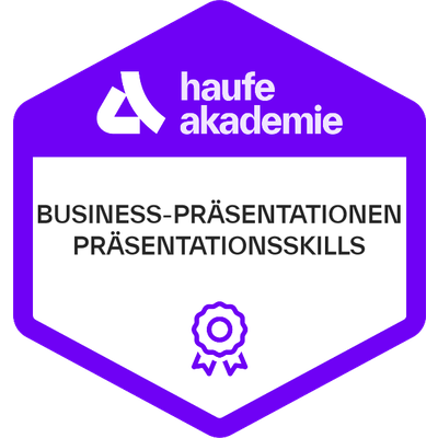 Empfänger:innen dieses Badges haben an einer betrieblichen Weiterbildung der Haufe Akademie teilgenommen. Die betriebliche Weiterbildung vermittelte profundes Wissen und Kompetenzen mit höchsten Anforderungen an Aktualität, Qualität und Praxisrelevanz. Ausgewählte Top-Referent:innen, State-of-the-Art Inhalte und erprobte Lerntransfertools befähigen die Empfänger:innen dieses Badges dazu, das vermittelte Know-how wirksam in die Praxis umzusetzen.