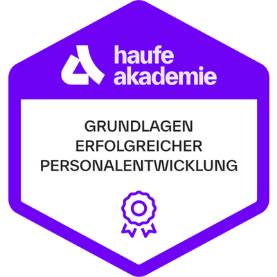 Empfänger:innen dieses Badges haben an einer betrieblichen Weiterbildung der Haufe Akademie teilgenommen. Die betriebliche Weiterbildung vermittelte profundes Wissen und Kompetenzen mit höchsten Anforderungen an Aktualität, Qualität und Praxisrelevanz. Ausgewählte Top-Referent:innen, State-of-the-Art Inhalte und erprobte Lerntransfertools befähigen die Empfänger:innen dieses Badges dazu, das vermittelte Know-how wirksam in die Praxis umzusetzen.