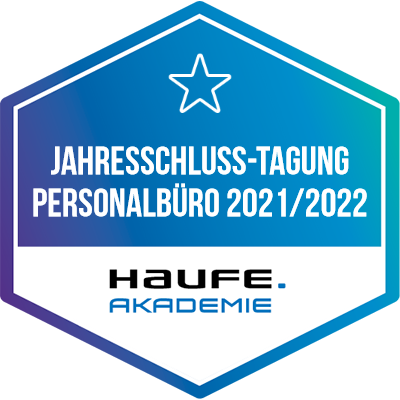 Empfänger:innen dieses Badges haben an einer betrieblichen Weiterbildung der Haufe Akademie teilgenommen. Die betriebliche Weiterbildung vermittelte profundes Wissen und Kompetenzen mit höchsten Anforderungen an Aktualität, Qualität und Praxisrelevanz. Ausgewählte Top-Referent:innen, State-of-the-Art Inhalte und erprobte Lerntransfertools befähigen die Empfänger:innen dieses Badges dazu, das vermittelte Know-how wirksam in die Praxis umzusetzen.
