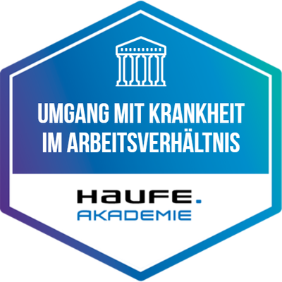 Empfänger:innen dieses Badges haben an einer betrieblichen Weiterbildung der Haufe Akademie teilgenommen. Die betriebliche Weiterbildung vermittelte profundes Wissen und Kompetenzen mit höchsten Anforderungen an Aktualität, Qualität und Praxisrelevanz. Ausgewählte Top-Referent:innen, State-of-the-Art Inhalte und erprobte Lerntransfertools befähigen die Empfänger:innen dieses Badges dazu, das vermittelte Know-how wirksam in die Praxis umzusetzen.