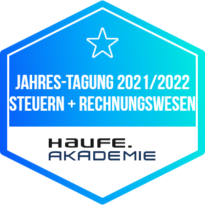 Empfänger:innen dieses Badges haben an einer betrieblichen Weiterbildung der Haufe Akademie teilgenommen. Die betriebliche Weiterbildung vermittelte profundes Wissen und Kompetenzen mit höchsten Anforderungen an Aktualität, Qualität und Praxisrelevanz. Ausgewählte Top-Referent:innen, State-of-the-Art Inhalte und erprobte Lerntransfertools befähigen die Empfänger:innen dieses Badges dazu, das vermittelte Know-how wirksam in die Praxis umzusetzen.