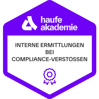 Empfänger:innen dieses Badges haben an einer betrieblichen Weiterbildung der Haufe Akademie teilgenommen. Die betriebliche Weiterbildung vermittelte profundes Wissen und Kompetenzen mit höchsten Anforderungen an Aktualität, Qualität und Praxisrelevanz. Ausgewählte Top-Referent:innen, State-of-the-Art Inhalte und erprobte Lerntransfertools befähigen die Empfänger:innen dieses Badges dazu, das vermittelte Know-how wirksam in die Praxis umzusetzen.